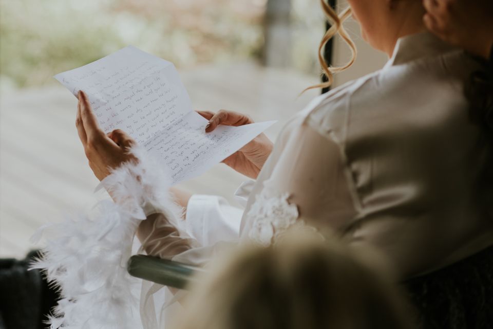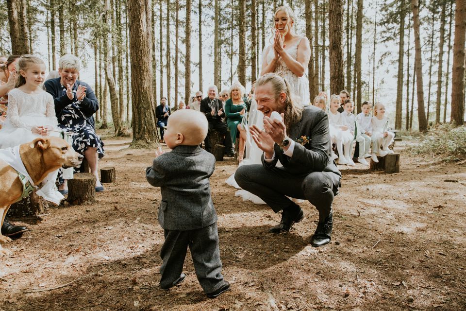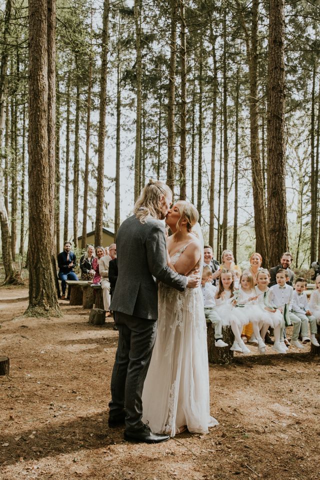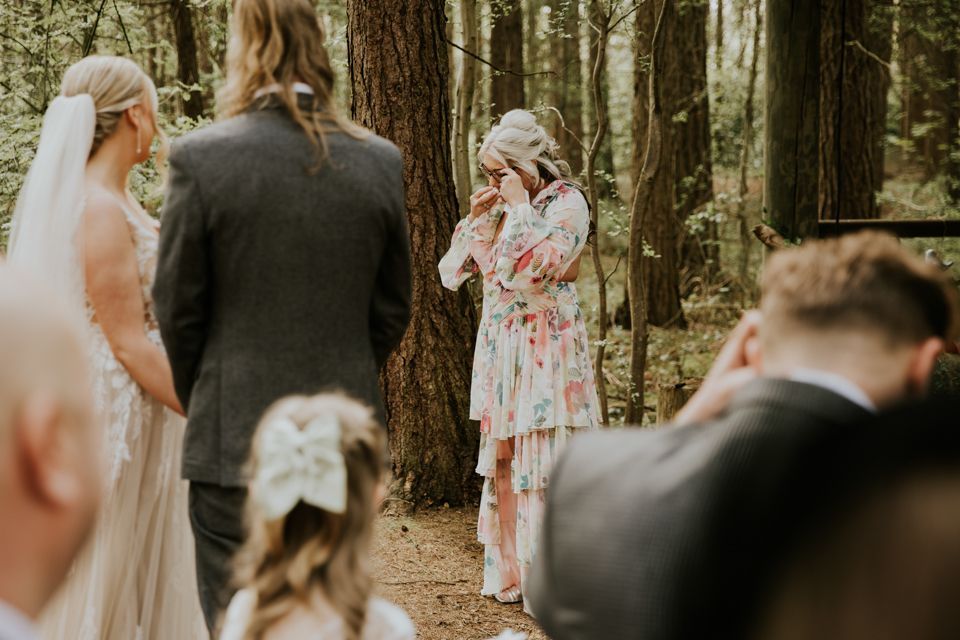 The ceremony took place outside, deep among the trees. No aisles in the traditional sense, no walls, no ceiling, just the sound of the woods and a group of people standing close together.