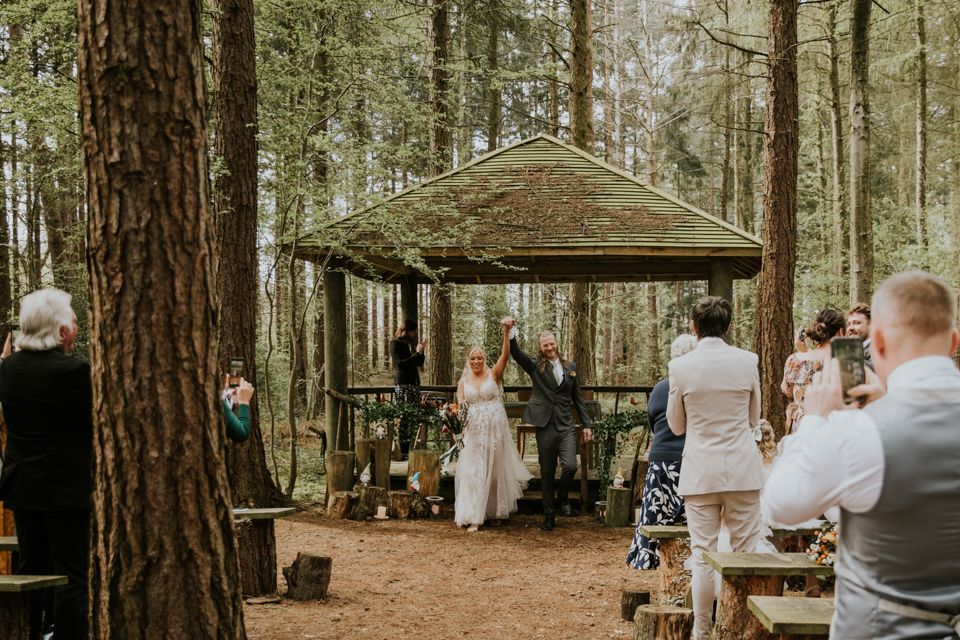 It felt more like a festival camp than a wedding weekend. Conversations drifted, drinks were passed around, and the forest did its thing in the background.