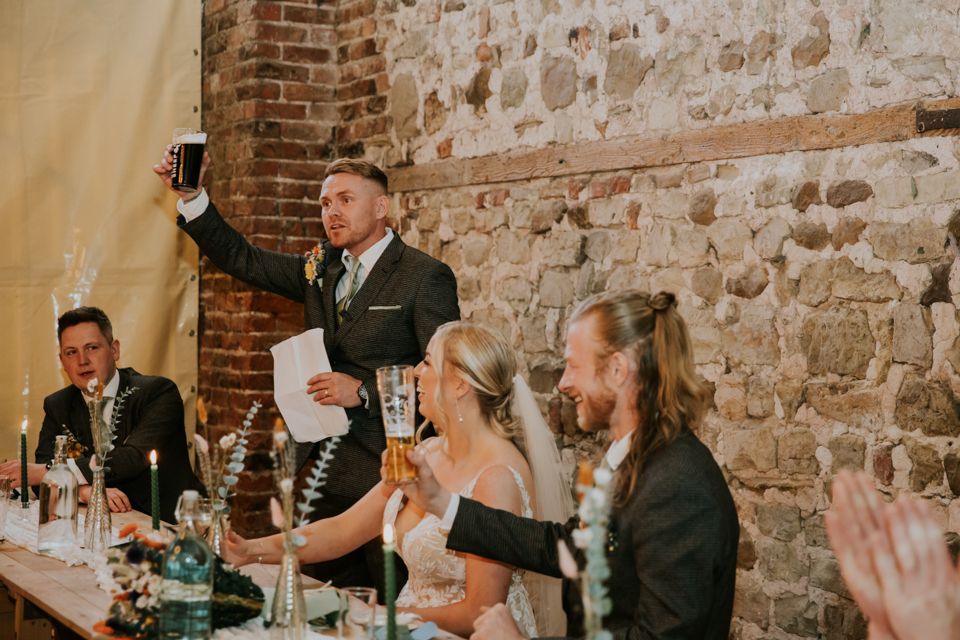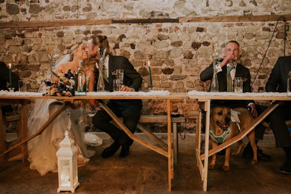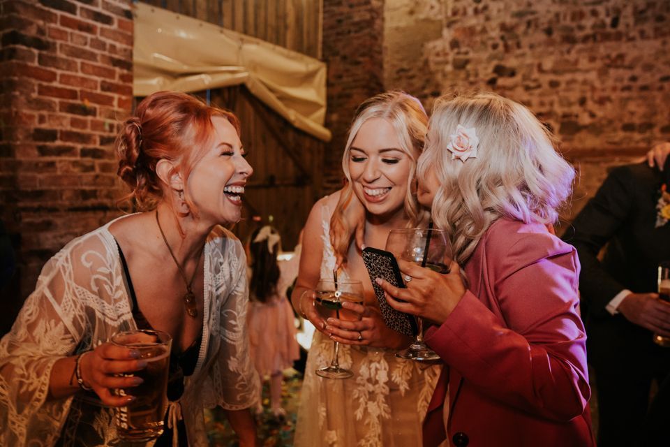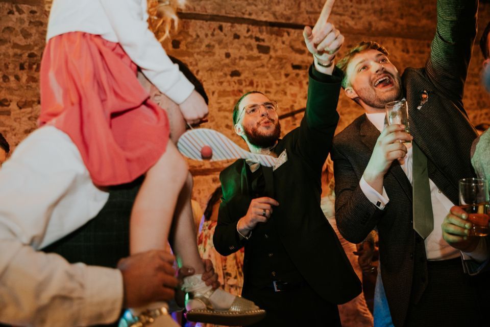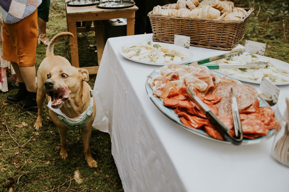 After the ceremony, everyone made their way to the barn for food. A pizza van handled the catering — casual, unfussy, and exactly what the day needed.