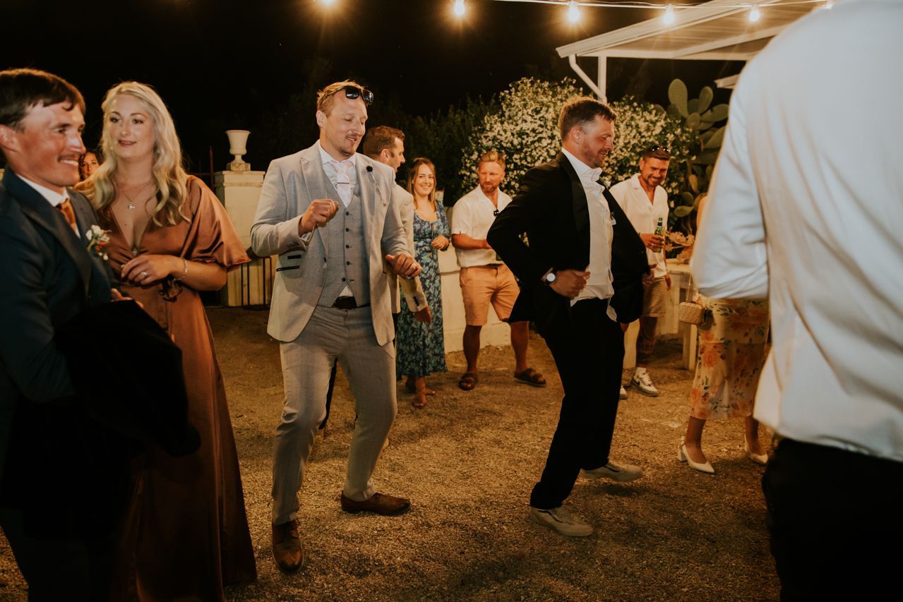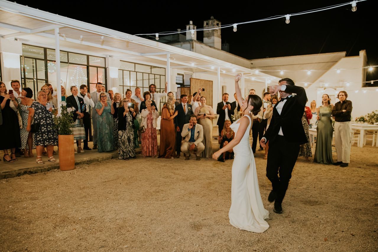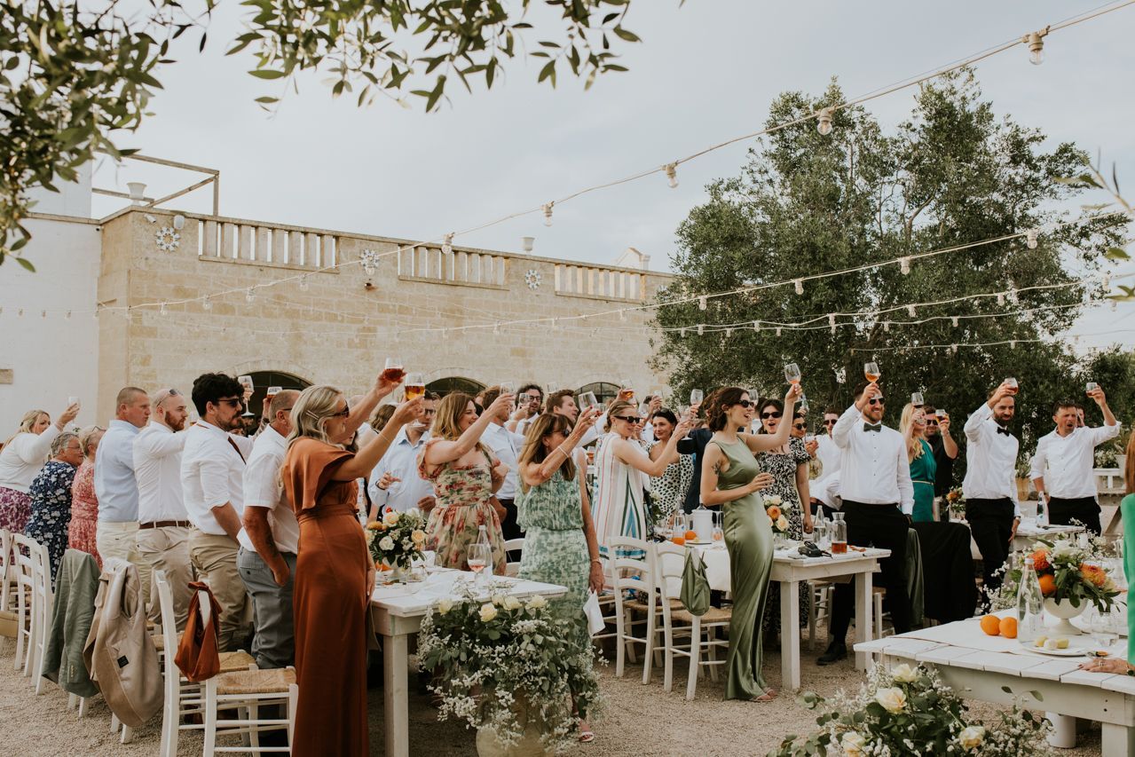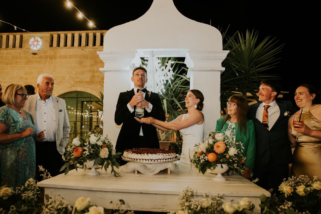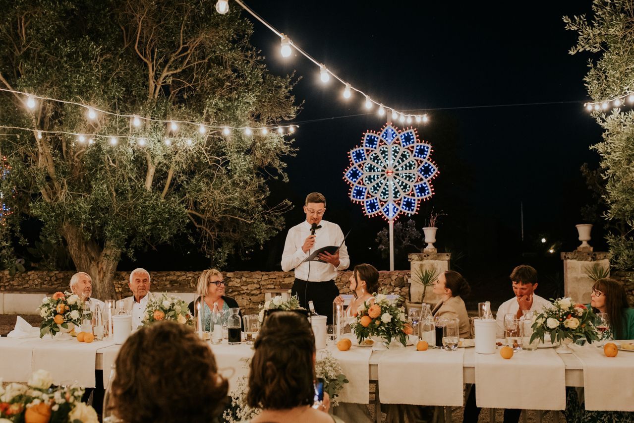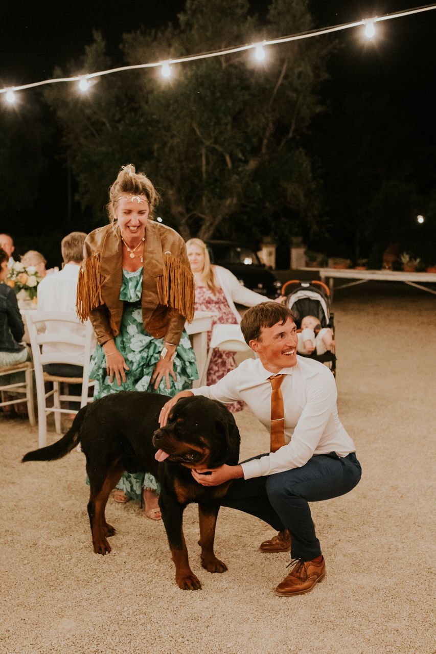 As the sun dipped, the celebrations flowed into a long Italian evening. Amazing food, plenty of wine, relaxed speeches and dancing under the stars. Photographing this wedding at Masseria Fulcignano was a reminder of how good destination weddings can be when they’re done this way! Chilled, joyful, and focused on spending real time together in an incredible place. One of the highlights of the evening was the neighbours dog crashing the speeches. The night finished off with an absolutely gigantic tiramisu, not your average wedding cake cut.