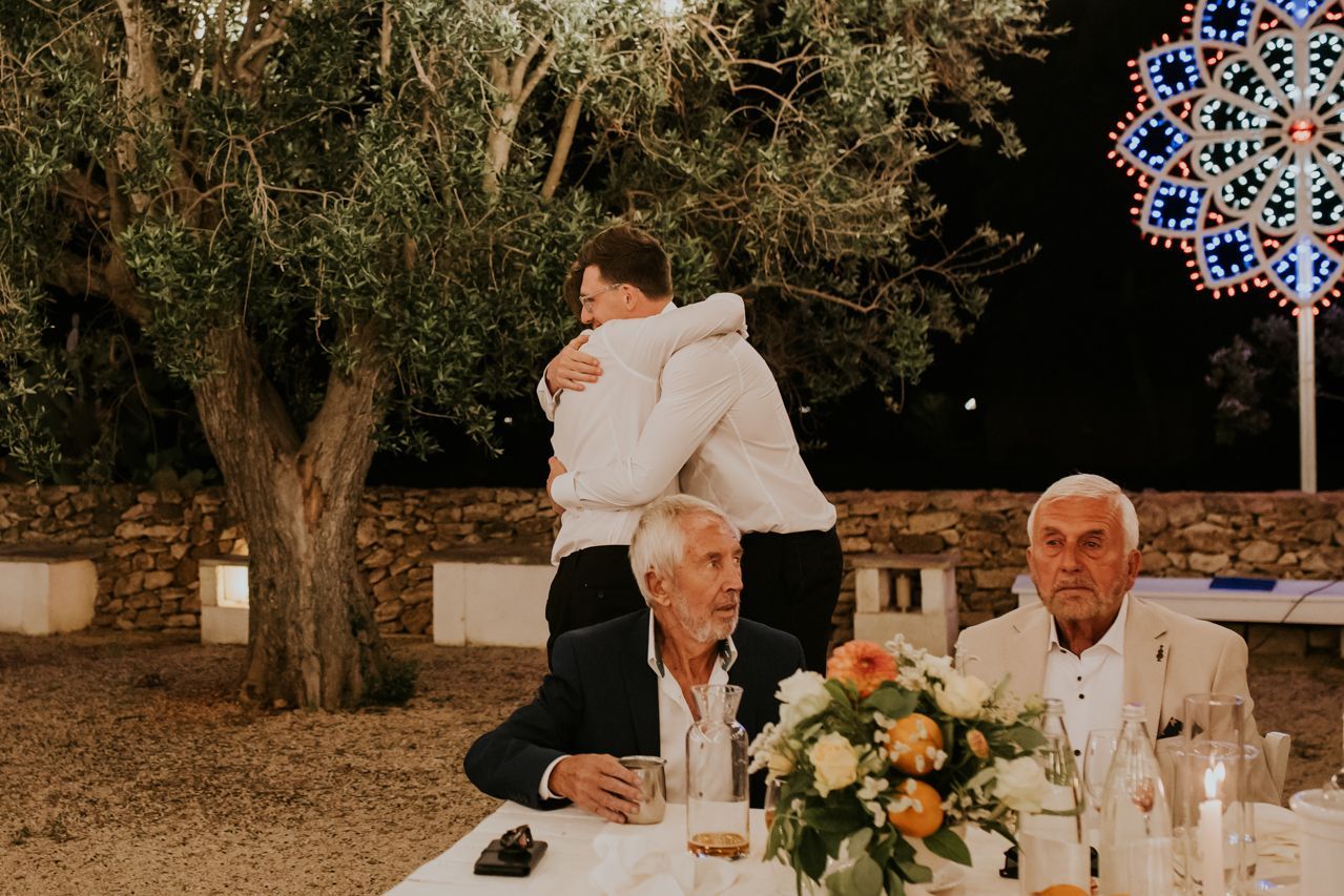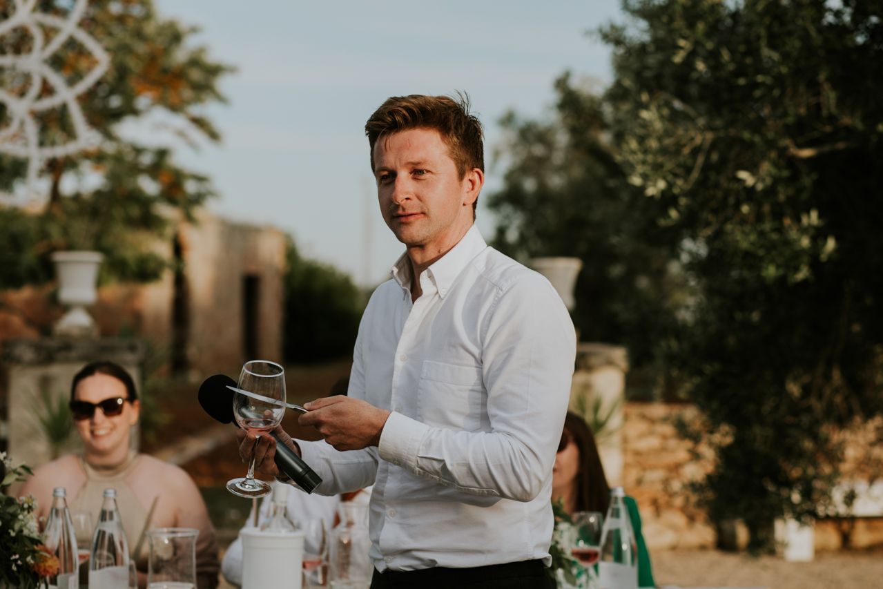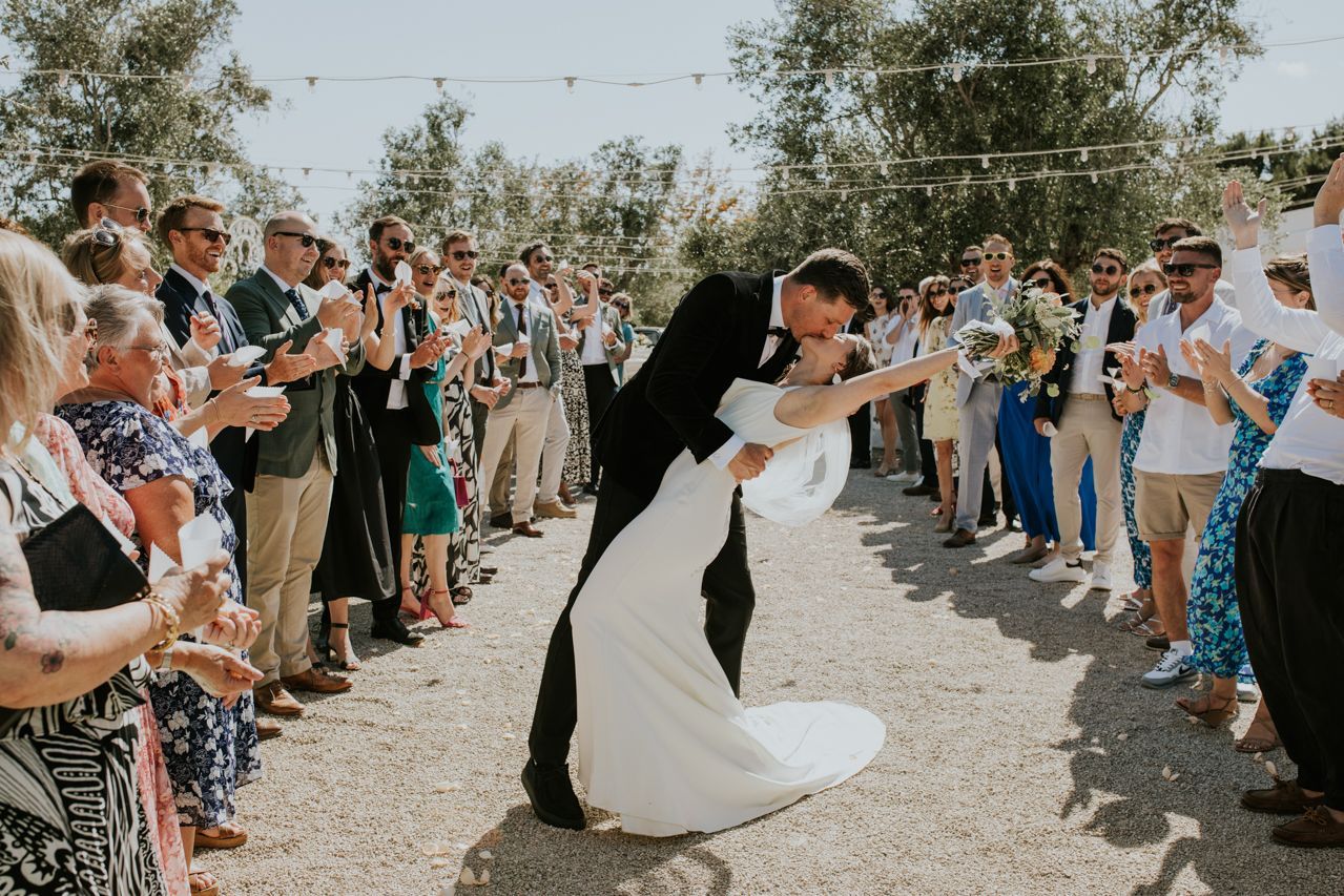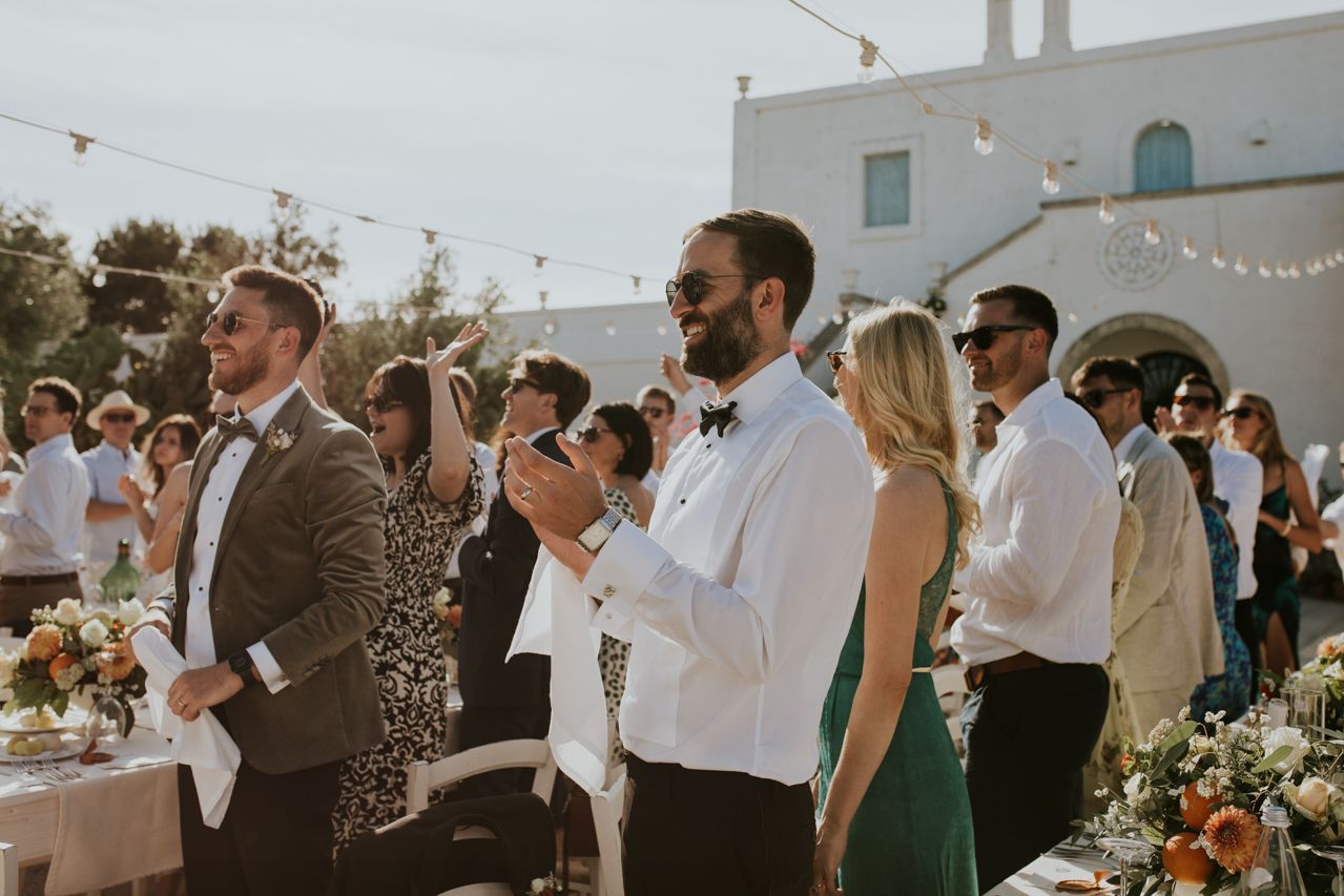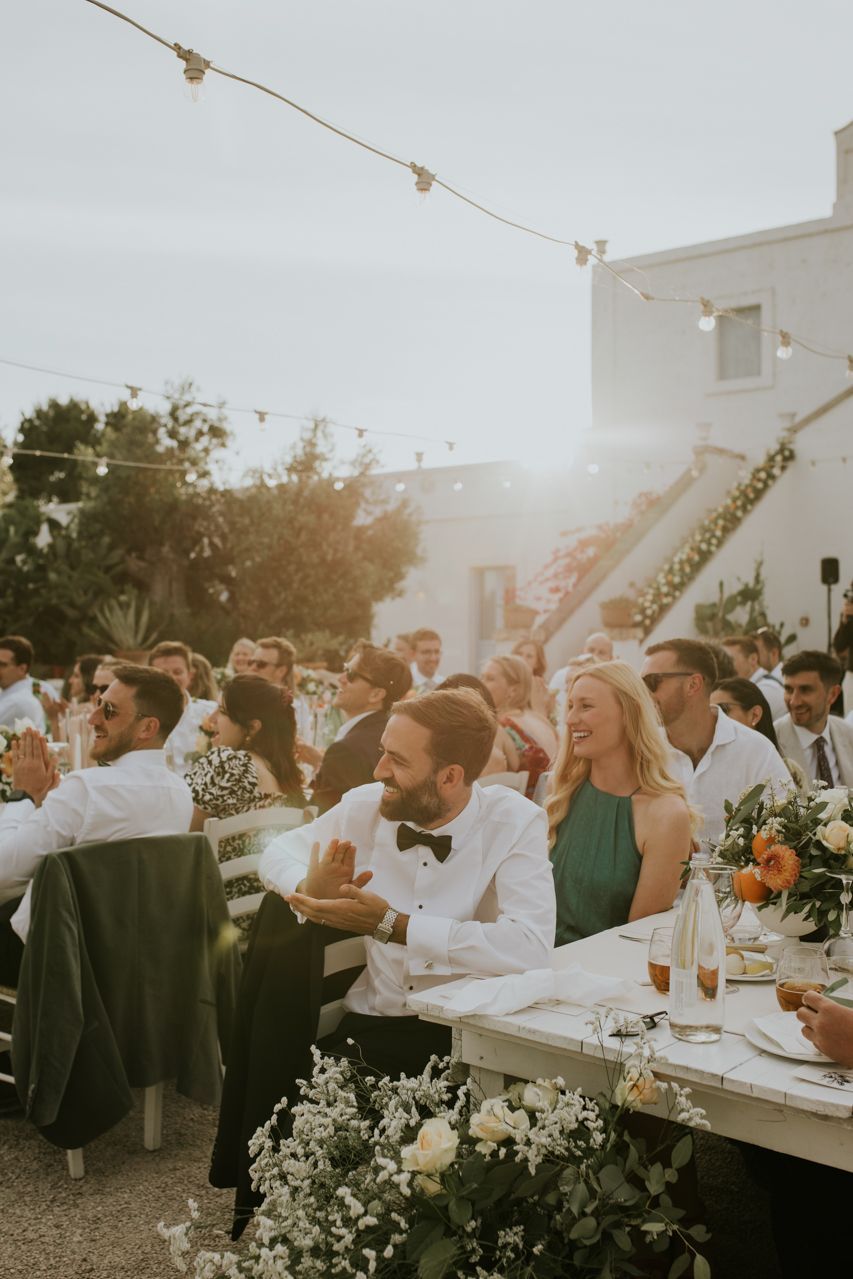 As the sun dipped, the celebrations flowed into a long Italian evening. Amazing food, plenty of wine, relaxed speeches and dancing under the stars. Photographing this wedding at Masseria Fulcignano was a reminder of how good destination weddings can be when they’re done this way! Chilled, joyful, and focused on spending real time together in an incredible place. One of the highlights of the evening was the neighbours dog crashing the speeches. The night finished off with an absolutely gigantic tiramisu, not your average wedding cake cut.