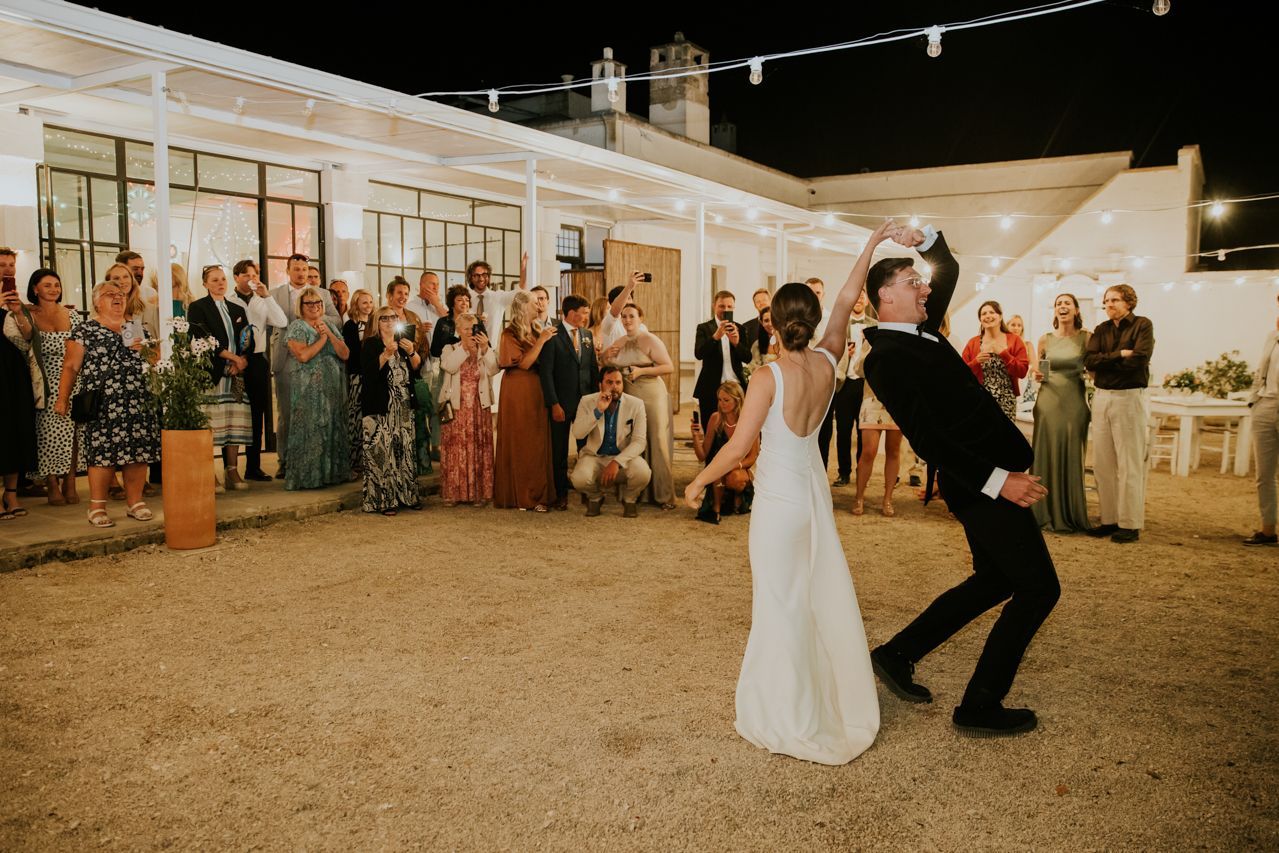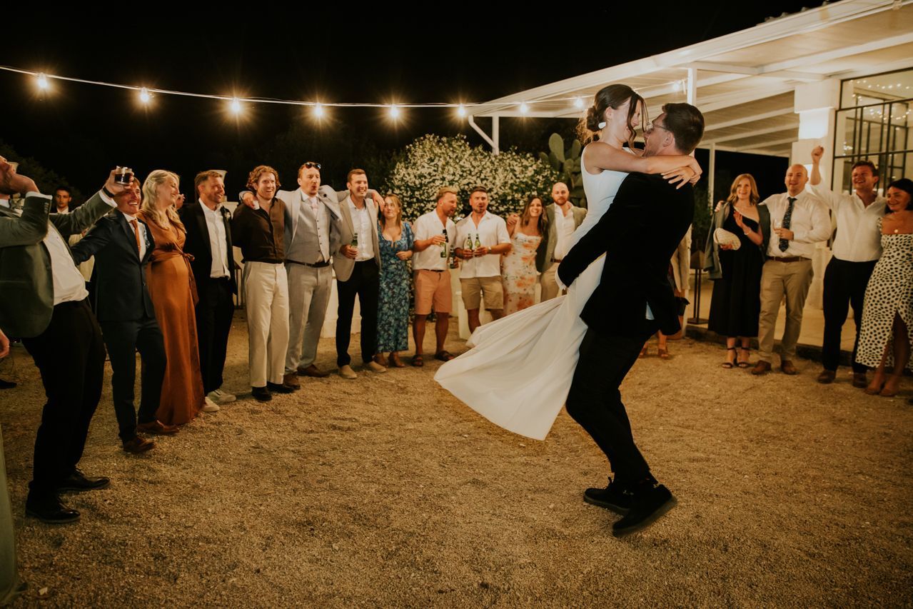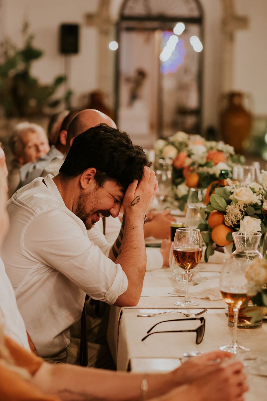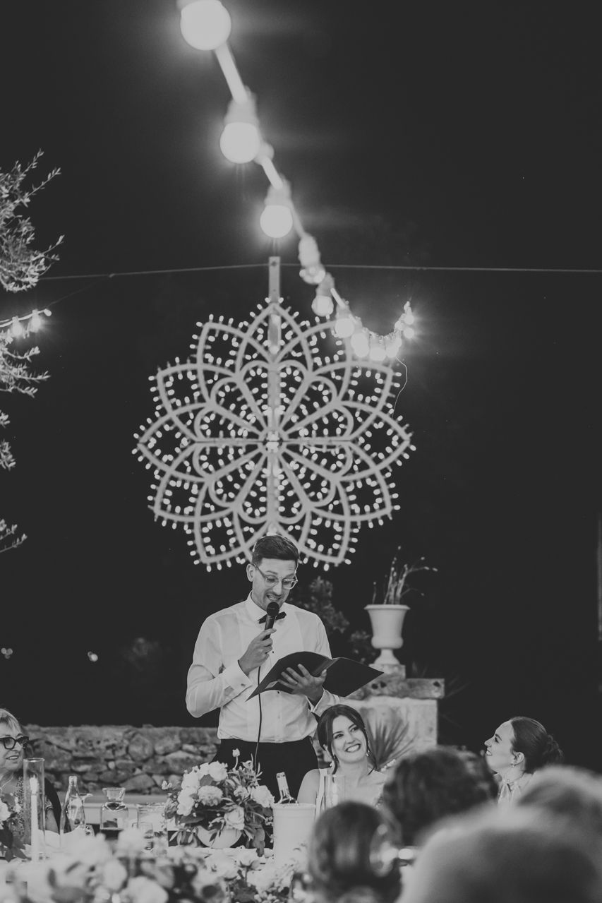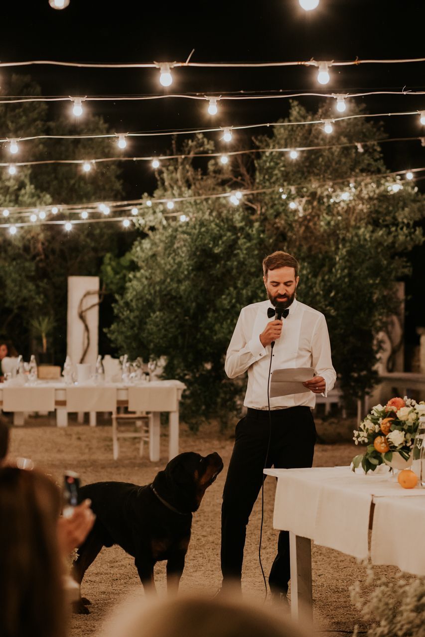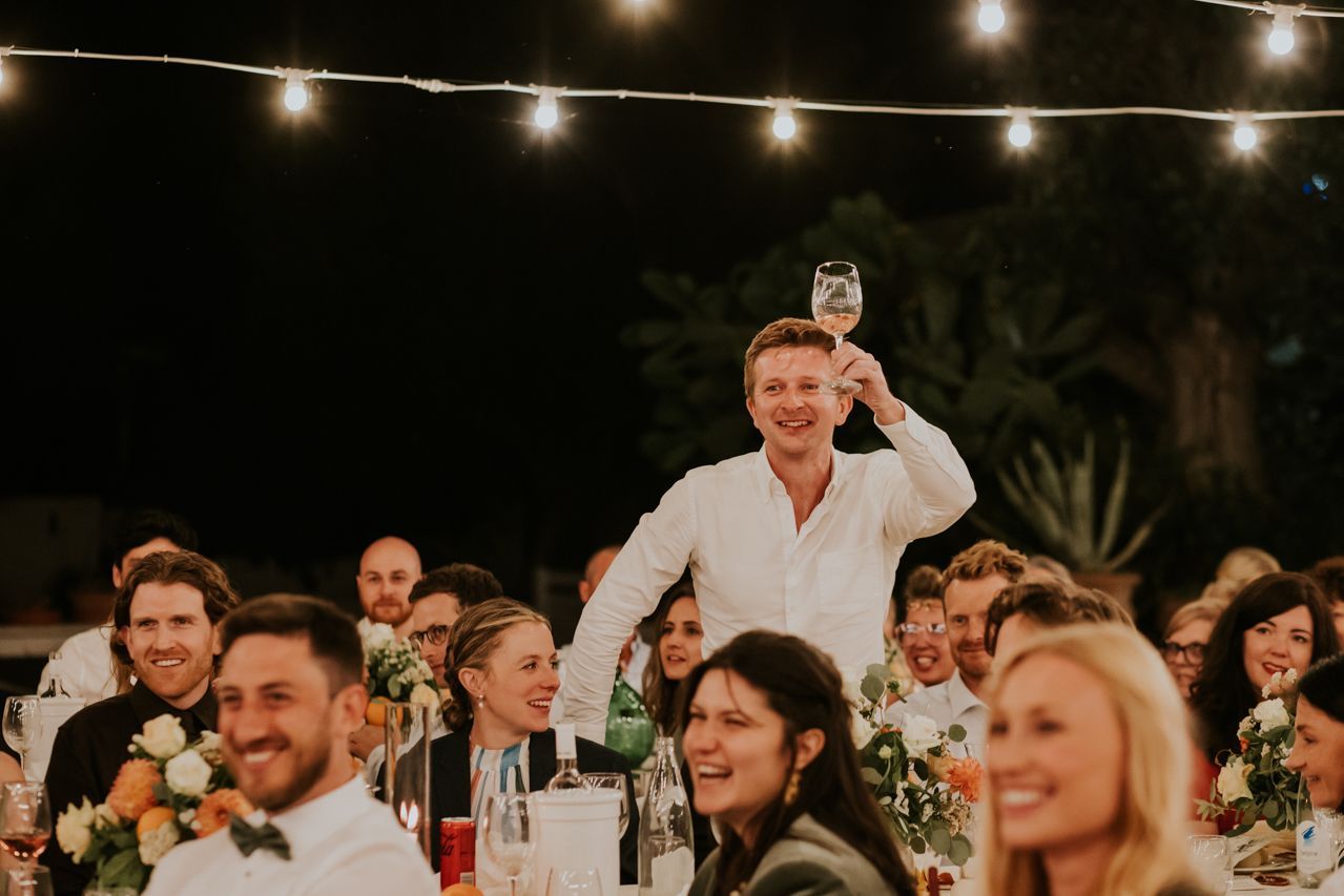 As the sun dipped, the celebrations flowed into a long Italian evening. Amazing food, plenty of wine, relaxed speeches and dancing under the stars. Photographing this wedding at Masseria Fulcignano was a reminder of how good destination weddings can be when they’re done this way! Chilled, joyful, and focused on spending real time together in an incredible place. One of the highlights of the evening was the neighbours dog crashing the speeches. The night finished off with an absolutely gigantic tiramisu, not your average wedding cake cut.
