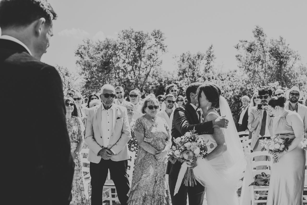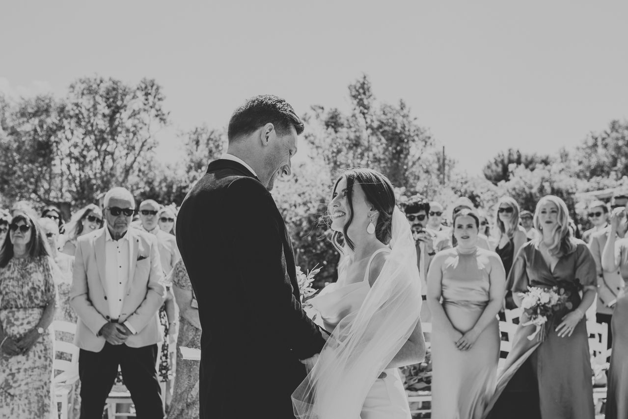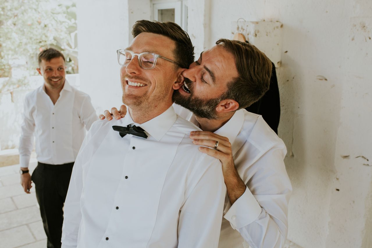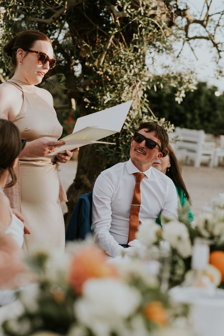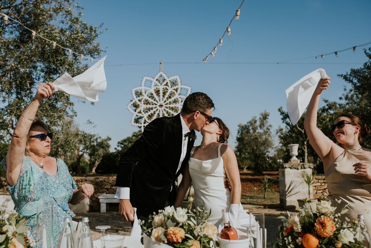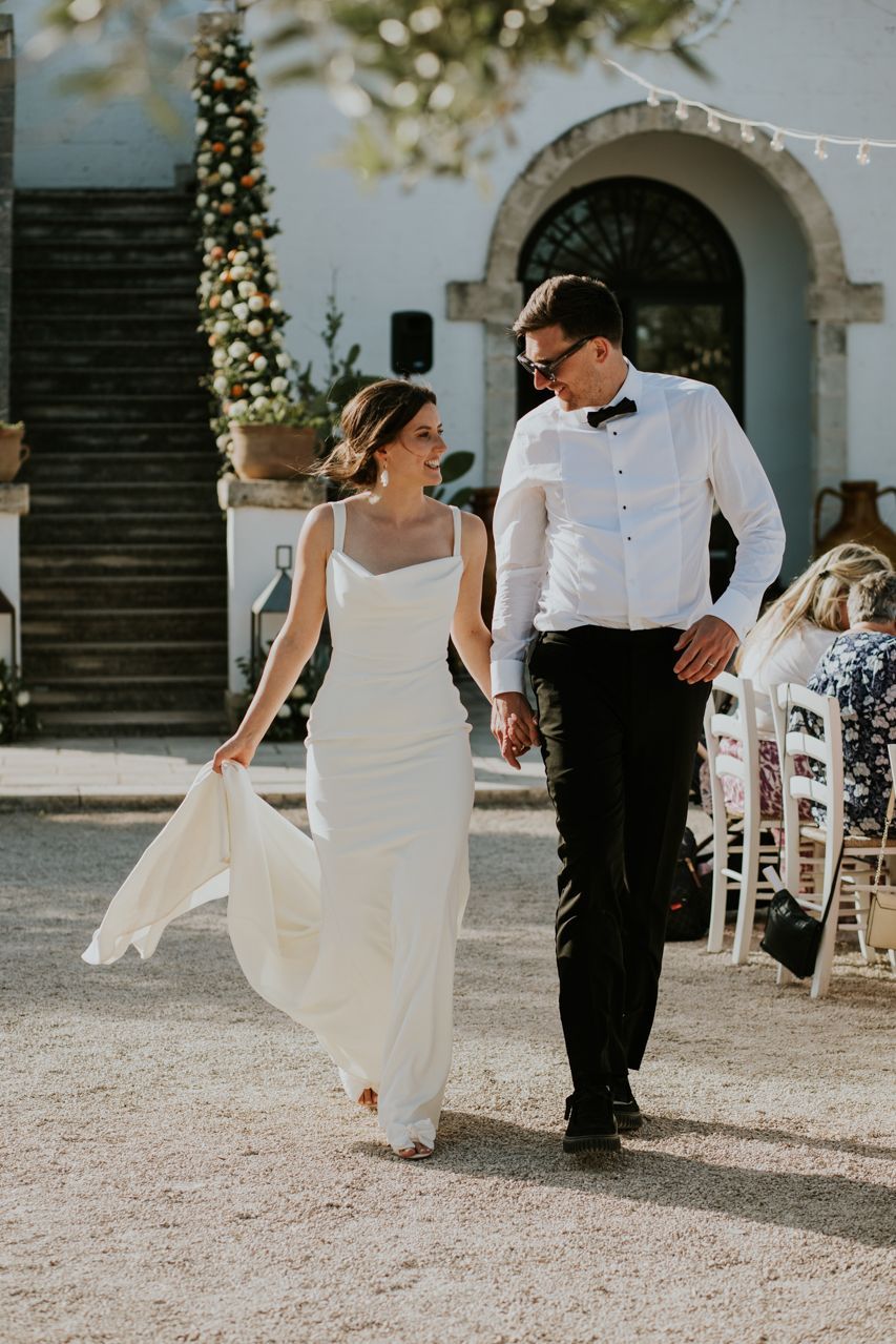 On the wedding morning, things were super chilled, with preparations happening around the masseria at a nice gentle pace. Doors open, music playing, friends popping in and out. There was no pressure, stress or rushing around . The ceremony took place outdoors among the olive trees, simple and personal, with beautiful light and lots of emotion. It felt intimate and honest, and typically Italian..