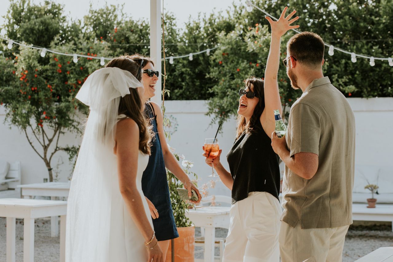 The celebrations actually kicked off the day before with a pool party, which was the perfect way for everyone to settle in. Lots of Aperol, sunshine, music, and plenty of laughs set the tone for the rest of the weekend. It gave everyone a chance to relax, shake off the travel, and just enjoy being together, and it made the wedding day itself feel even more natural and connected.