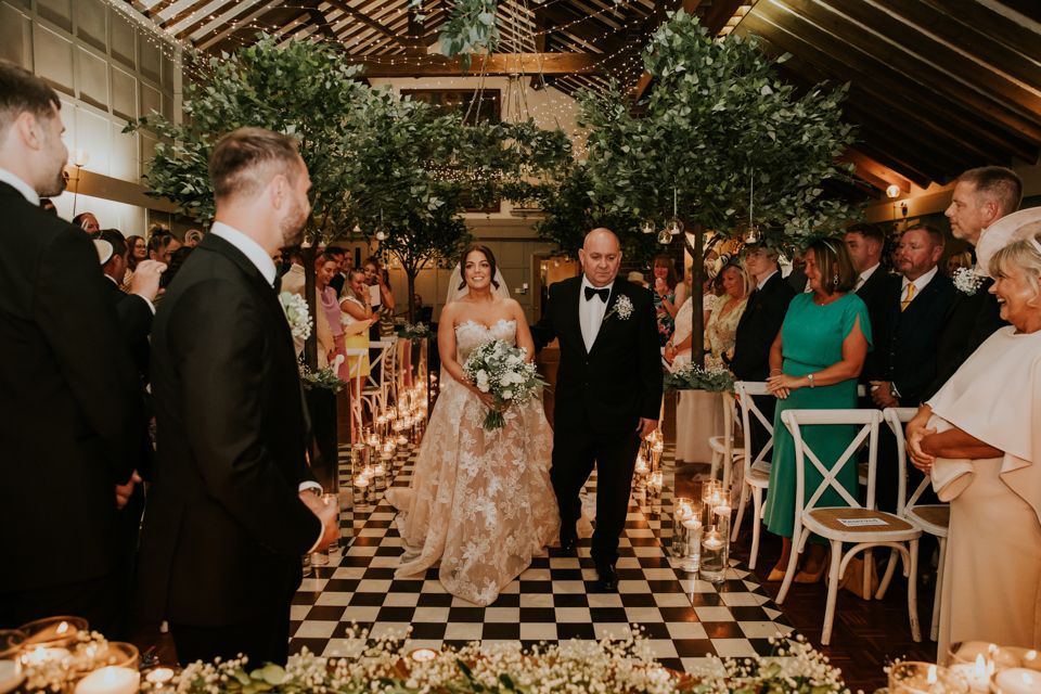 A black-tie wedding at Larkspur Lodge in Knutsford, Cheshire. A big celebration with friends, family and a glamorous, relaxed feel throughout the day.