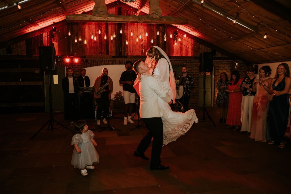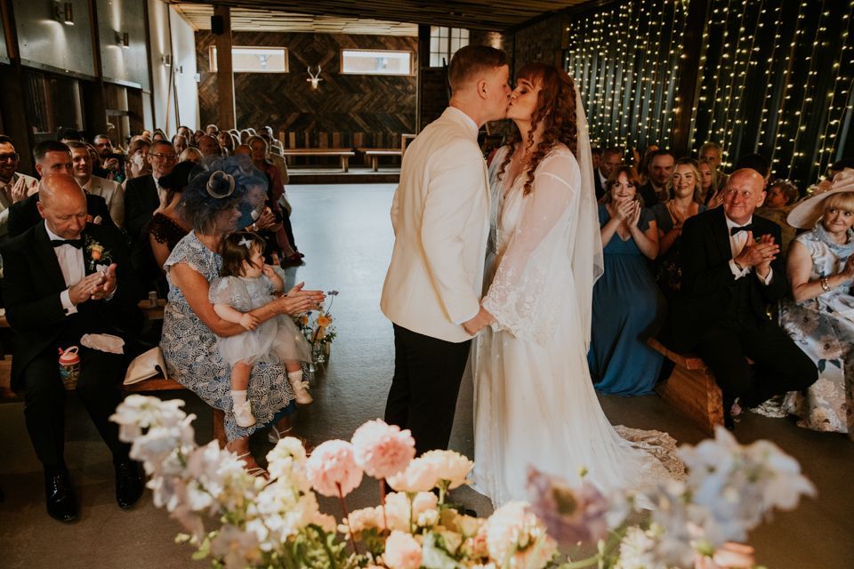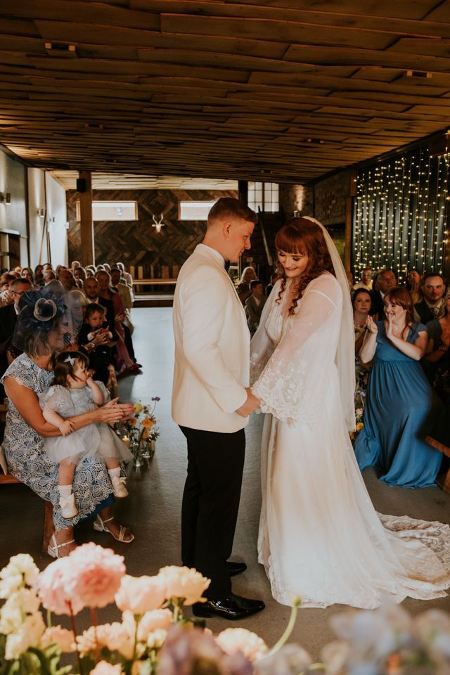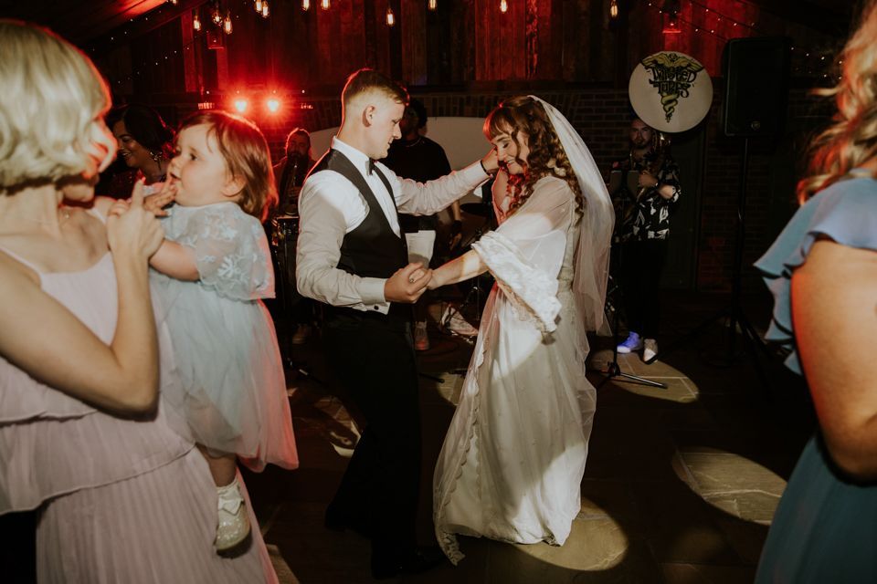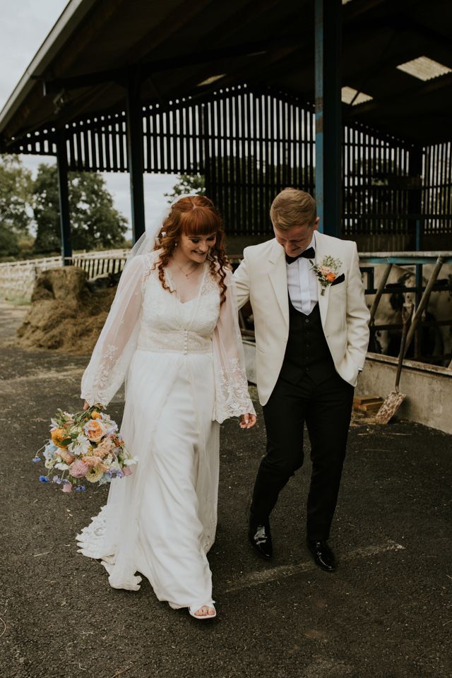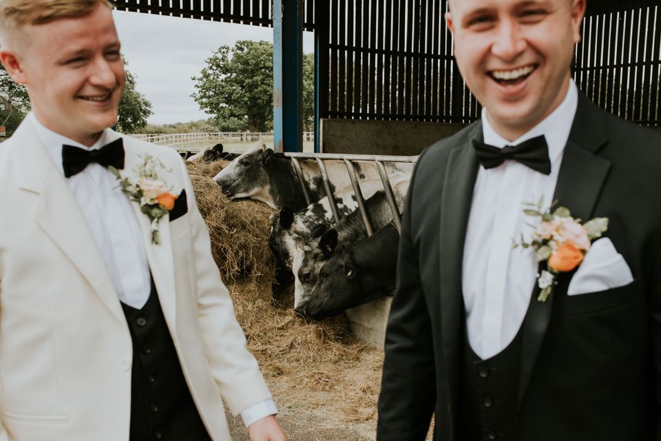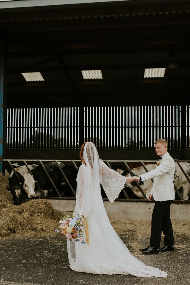 A big, high-energy wedding at Owen House Wedding Barn in Cheshire. A boho-inspired dress, a tuxedo, and a venue that set the tone for the whole day.