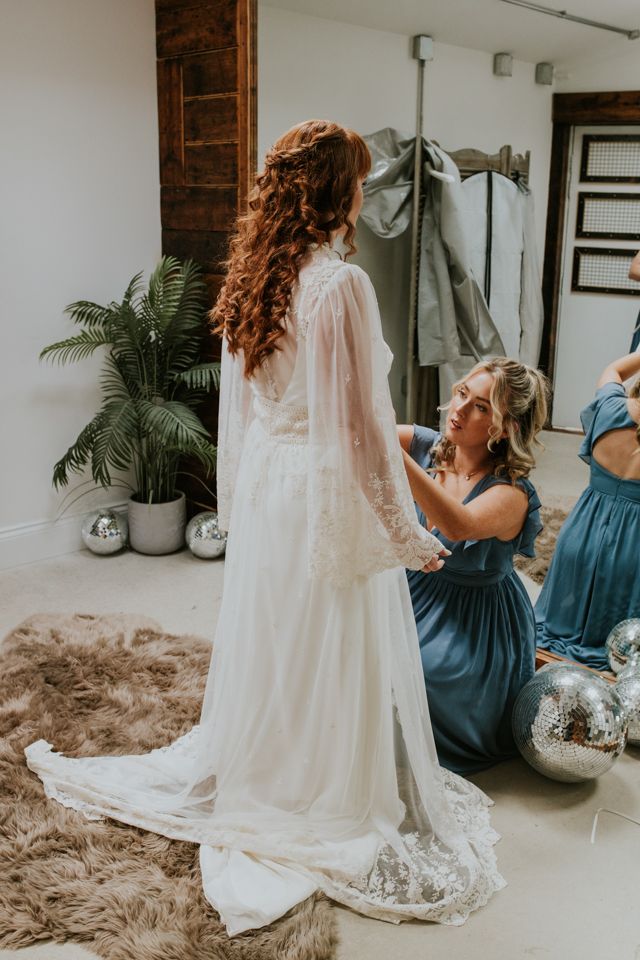Steph’s dress was boho-inspired, relaxed and stylish, but still made for impact. It moved, it caught the light, and it felt made for a venue like Owen House — cool without trying too hard.