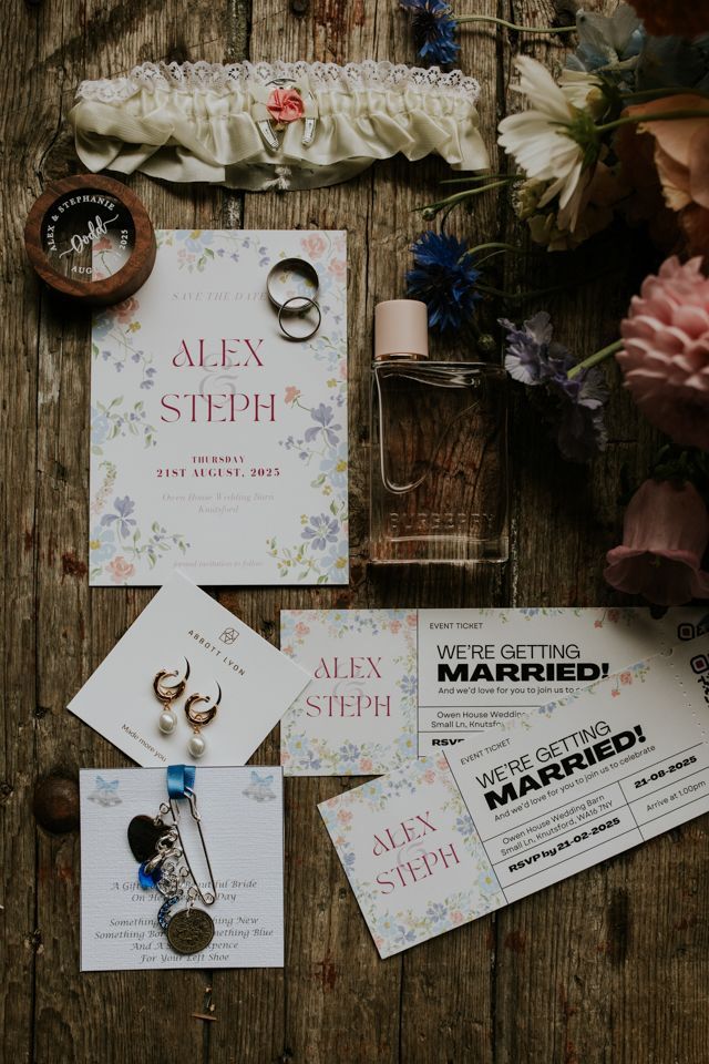 Owen House Wedding Barn isn’t subtle — and neither was Steph and Alex’s wedding. Set in the Cheshire countryside, it’s one of those venues that feels more like a creative space than a traditional wedding barn. Bold, eclectic, and full of personality.