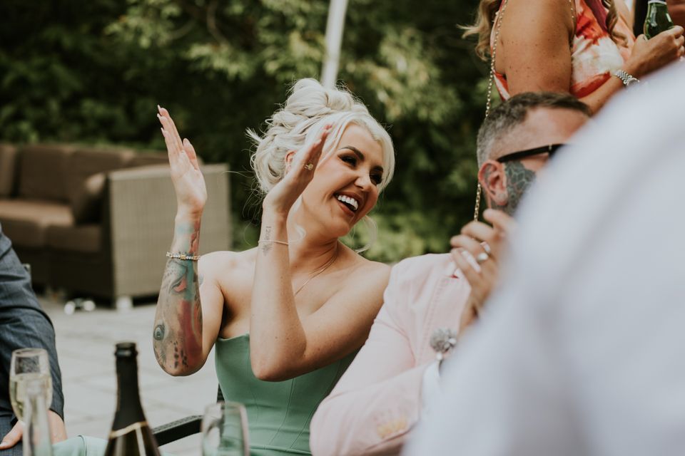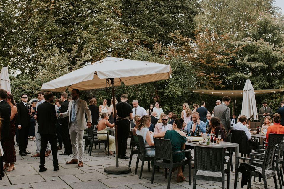 After the ceremony, the day flowed effortlessly into drinks and mingling outside. This is always one of my favourite parts of a wedding day at Styal Lodge — guests spread out across the grounds, conversations overlap, and couples actually get time to enjoy being newly married.